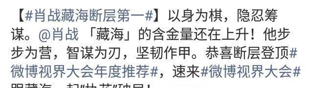 最近,肖战藏海断层第一消息冲上热搜榜位,引发众多网友关注!这一话题阅读量达万,互动.5万,讨论。网友们好评演员肖战!肖战出演的人物藏海,含金量还在上升!这是演员演技与剧本的精彩作用使然!值得一提的是,《藏海传》剧组阵容强大! 郑晓龙任总导演、曹译文执导。肖战、张婧仪、周奇、黄觉领衔主演,主角阵容强大!观众收看后,纷纷支持《藏海传》,这部古装剧的收视率名列前茅!演员肖战人气增加。微博视界大会推荐值万!这就是演员肖战的成功所在! 不由得让人想起肖战进入演艺圈后,所取得的成功!从杭州亚运会公益圆梦大使,到《梦中的那片海》热播,演员肖战再次赢得观众的支持!所以,在当下的演艺圈内,每一位演员在追梦的路上,都会拥有自己的光辉岁月。成功追梦,不仅仅需要演员的勇气与决心,更是对机会的把握与实力的彰显! 事实上,从杨紫到肖战,他们作后艺人的代表,都非常努力。越努力越幸运,也就更接近成功!影视作品的走红,优秀演员的成名,观众赞不绝口的点赞,还有源源不断地演出资源奔赴而来。